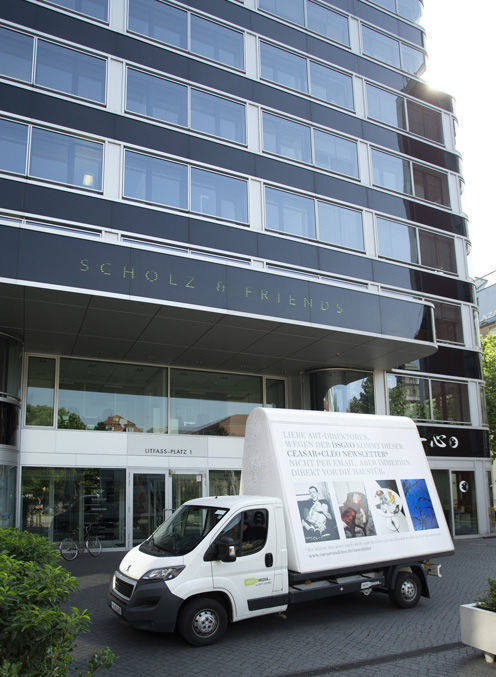 Weil die DSGVO nun das ungefragte Senden von Info-Mails verbietet, schickte die Produktionsagentur Caesar + Cleo halt ein Litomobil bei Werbeagenturen vorbei.