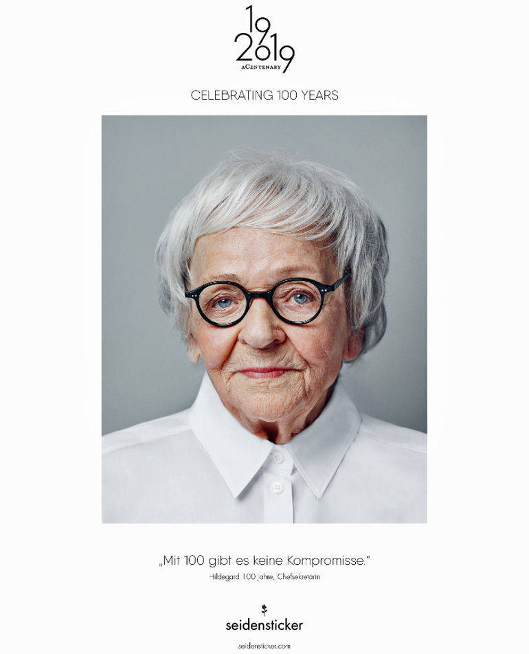Gerd Oliver Seidensticker, ebenfalls geschäftsführender Gesellschafter, ergänzt: "100 Firmenjahre hinterlassen Spuren, 100 Lebensjahre ebenfalls – dies kommt in den Bildern zum Ausdruck. Eine stimmige Kampagne zum 100. Geburtstag."
