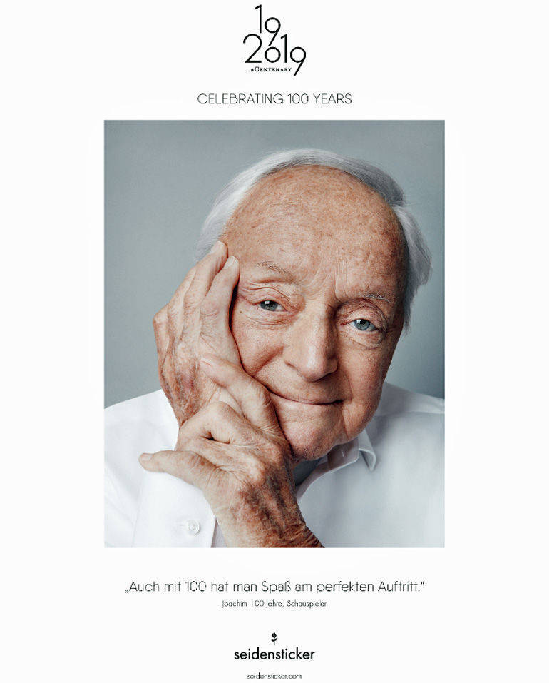 Mit beeindruckenden Motiven von 100-Jährigen setzt sich Seidensticker in Szene – um mit Gleichaltrigen im Rahmen einer Jubiläumskampagne die Geburtsstunde der Hemdenmarke im Januar 1919 zu feiern. Die Kampagnenmotive zeigen ab sofort ausgewählte Senioren im weißen Klassiker mit der schwarzen Rose von Seidensticker.